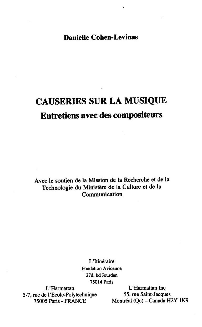 Danielle Cohen-Levinas, Causeries sur la musique: Entretiens avec des compositeur